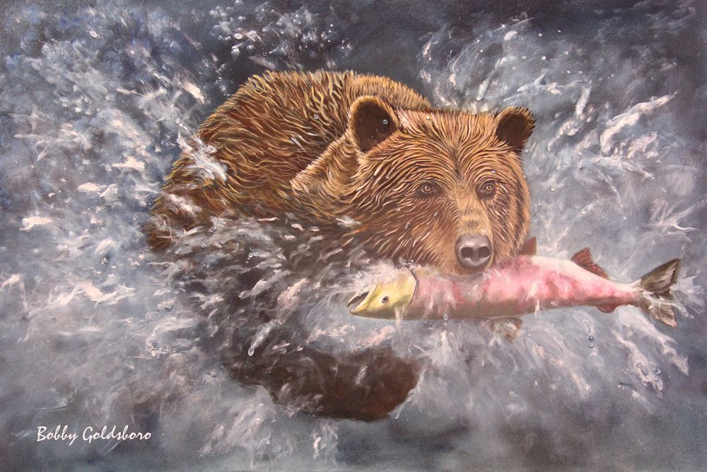 This painting shows the power of the Grizzly Bear! Bobby has photographed the grizzly on his trips to Yellowstone and the Grand Tetons. Original Oil Painting $9,500 SOLD