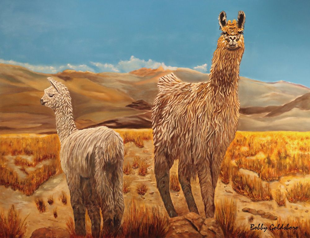Size: 52W x 40H An amazing portrait of a Llama and her baby. Their expressions are priceless! Bobby and Dianne are keeping this one for their new home!