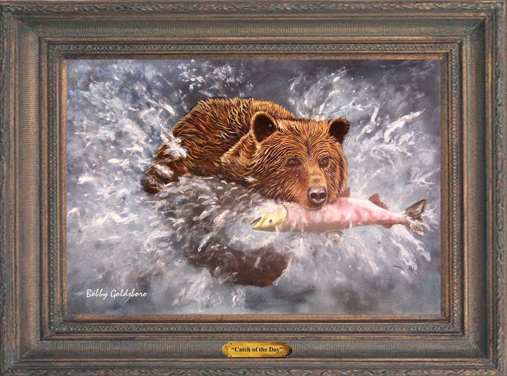 An amazing painting showing the power of the Grizzly Bear! Bobby has photographed the grizzly on his trips to Yellowstone and the Grand Tetons.