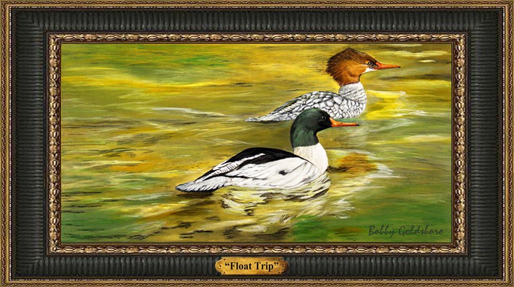 Two magnificent common mergansers enjoy the waters of the Grand Tetons. Bobby & Dianne saw this pair, Dianne photographed them and Bobby painted them! Print available in Art Gallery