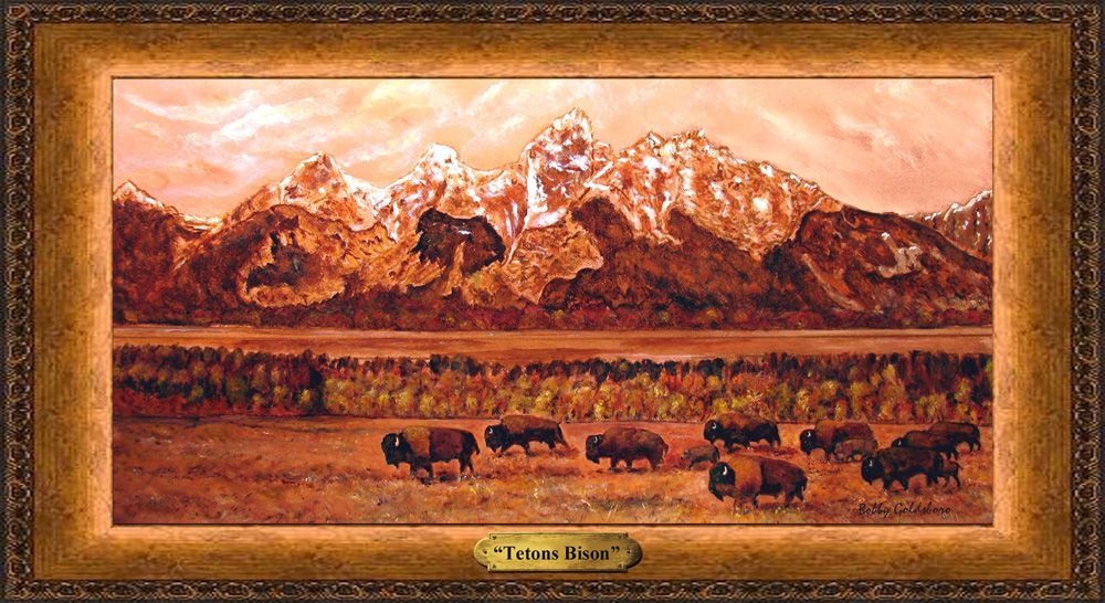 Bobby's second oil painting on Copper.This unique painting shows a bison herd in migration with the Grand Tetons in the background. Bobby has worked the oil paint into the copper surface as the old masters did, creating a stunning piece of art!