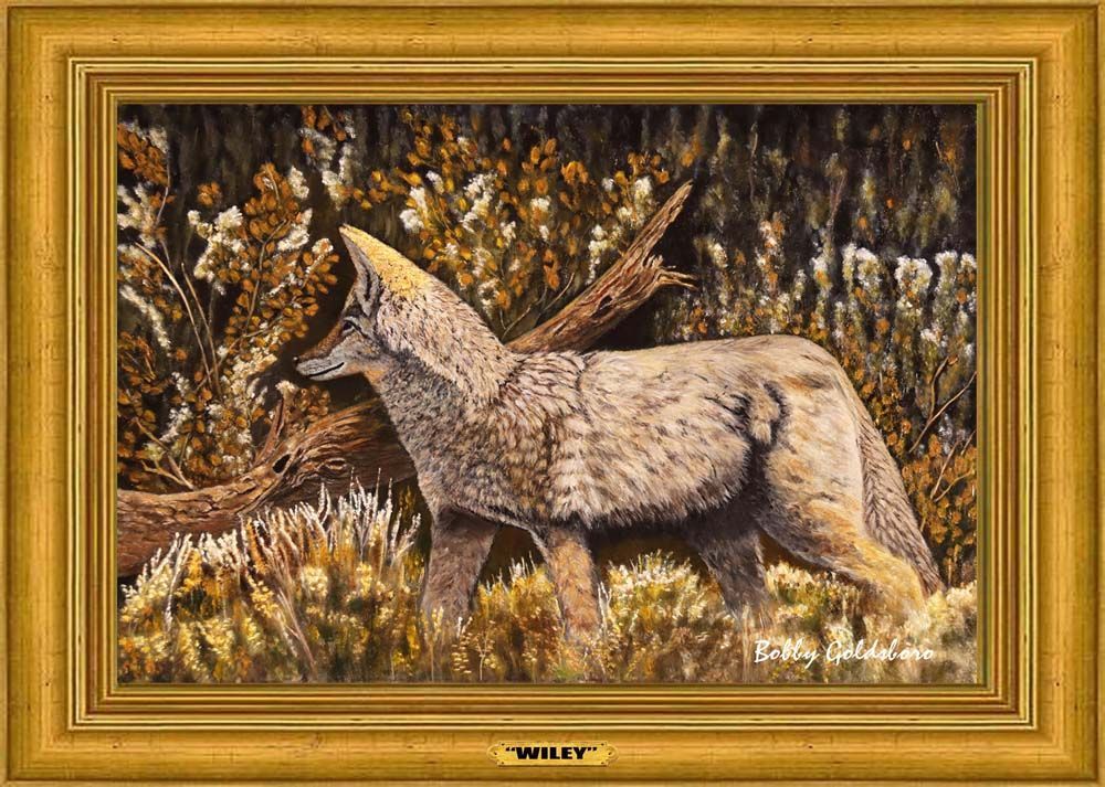 Size: 19W x 13H Original Oil Painting $1,950 SOLD Bobby said, "This coyote walked out of the brush in Jackson Hole, Wyoming looking as if he'd just left the groomer!" Bobby painted him exactly as he saw him.