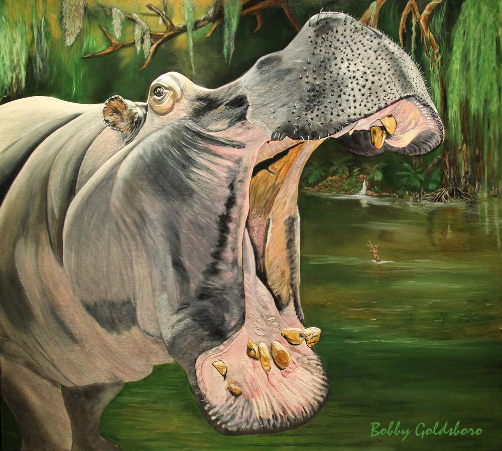 Lu, the Hippo just celebrated his 50th anniversary as the icon of Homosassa Springs State Wildlife Park. Bobby was commissioned to paint this amazing animal. The large oil painting now hangs in the entrance to Homosassa Springs Wildlife Park at 4150 S. Suncoast Blvd. in Homosassa Springs, FL.