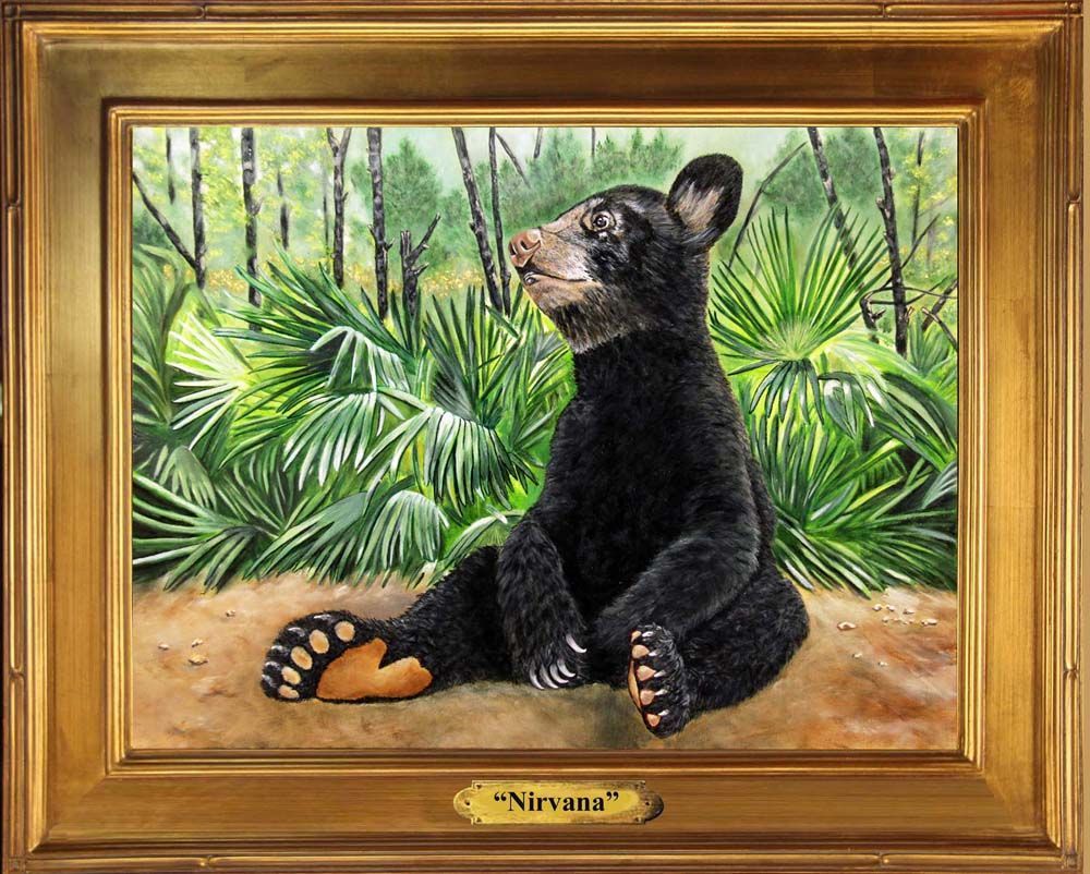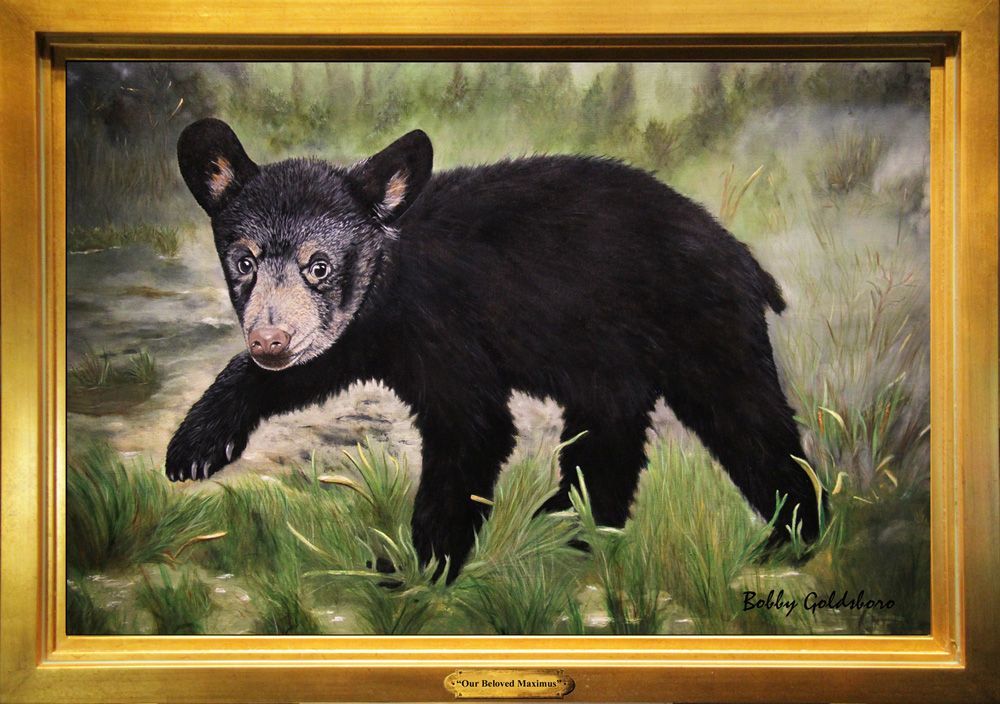 Size: 24H x 36W Max is the beloved black bear who arrived at Homosassa Springs as a cub. Bobby was commissioned by a generous donor to paint Max for the park. This painting is permanently displayed at Homosassa Springs Wildlife Park at 4150 S. Suncoast Blvd. in Homosassa Springs, Florida
